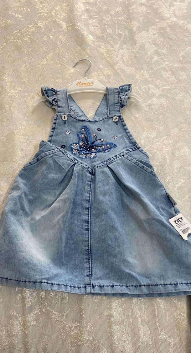 Nakışlı Kelebek Detaylı Kız Kot Elbise