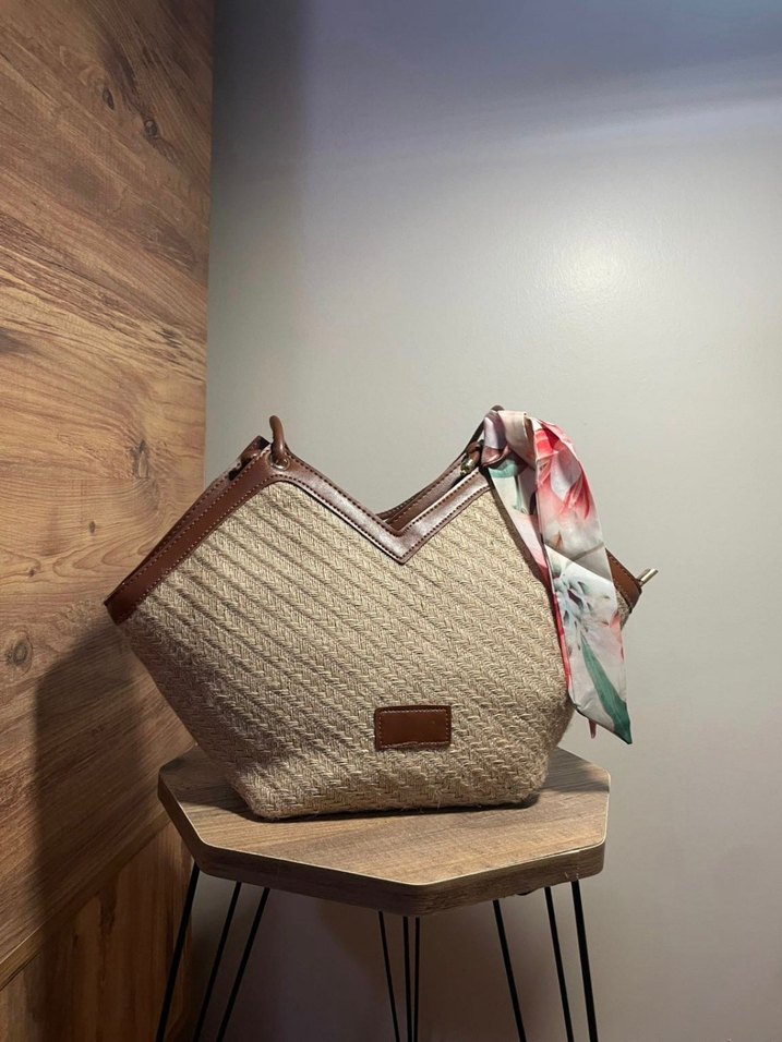 Sentetik kumaştan, nakışlı detaylı ve kemerli bej bohem kadın çantası. Trendy gündelik tarzlar için uygun.