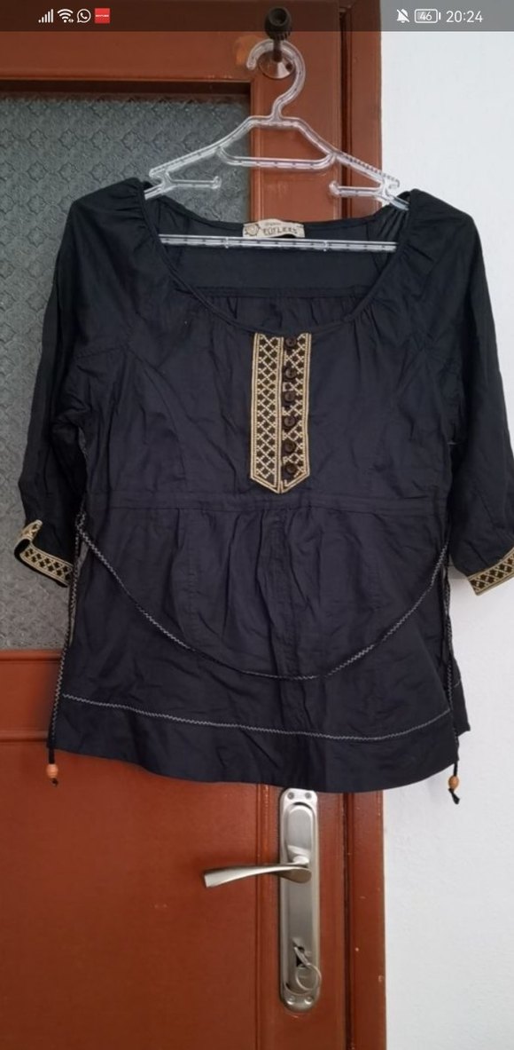 Nakışlı, Kemerli Siyah Bohem Bluz. Ürün sıfırdır