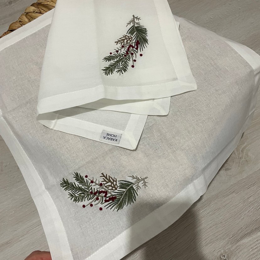 Nakışlı Keten Beyaz Amerikan Servis
