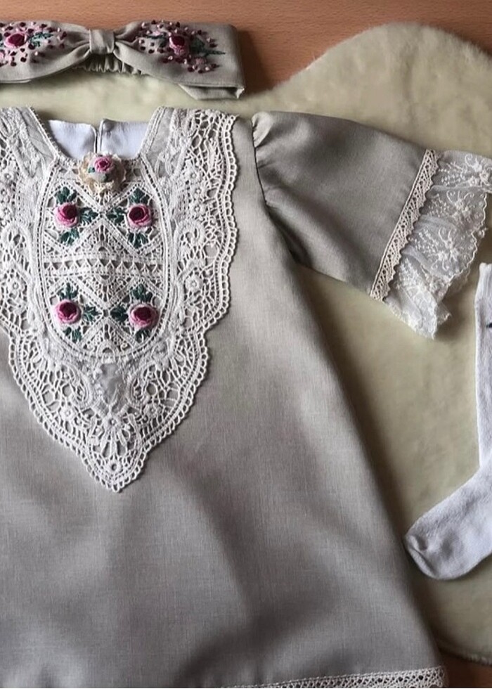 Nakışlı keten özel dikim elbise