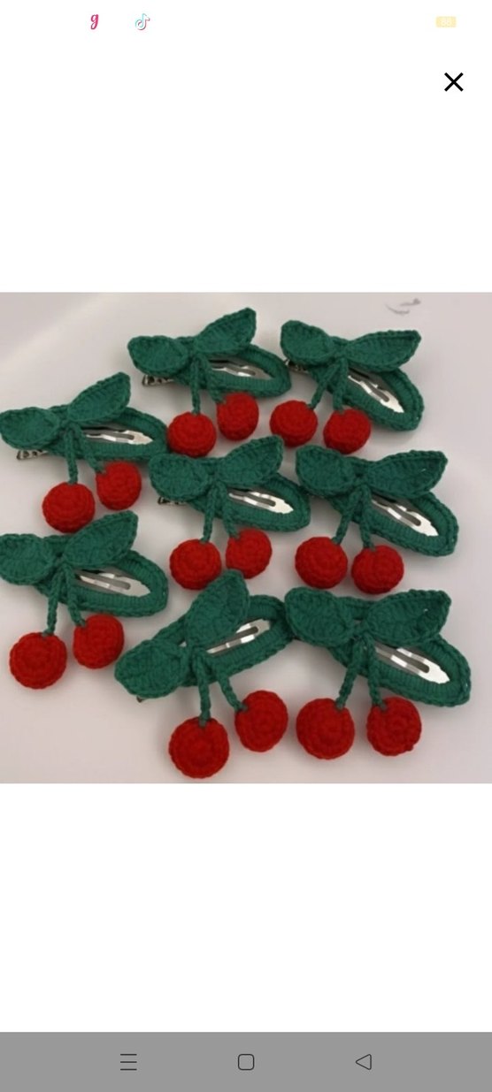 Nakışlı Kiraz Figürlü Örgü Çocuk Toka Seti
