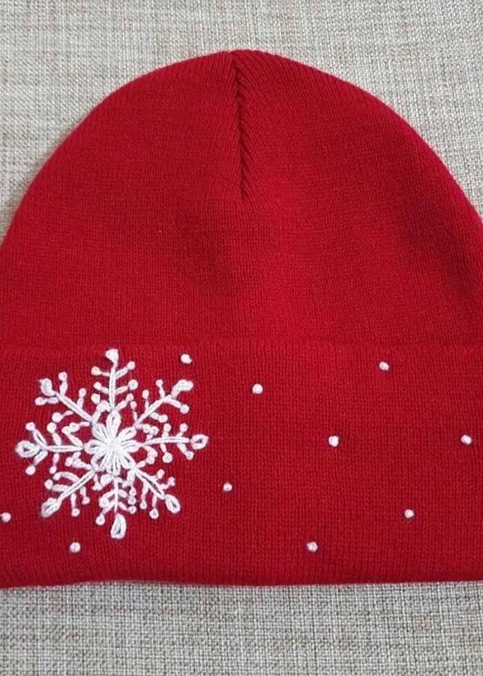 Nakışlı kırmızı bere