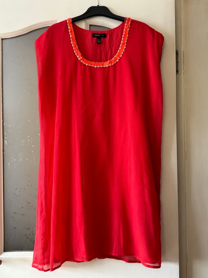 Nakışlı ve renkli detaylara sahip, kolsuz, yuvarlak yaka, bol kesim hamile tunik. İpek gibi kumaştan, günlük kullanım için bohem tarzda.