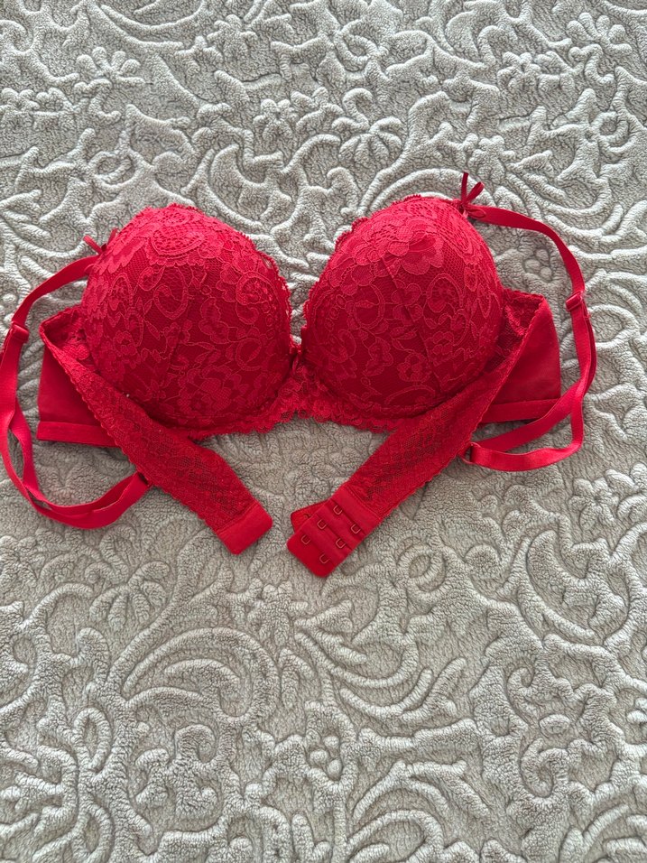Nakışlı desenlere sahip kırmızı bohem tarzda, rahat ve konforlu normal uzunlukta sütyen. 75B