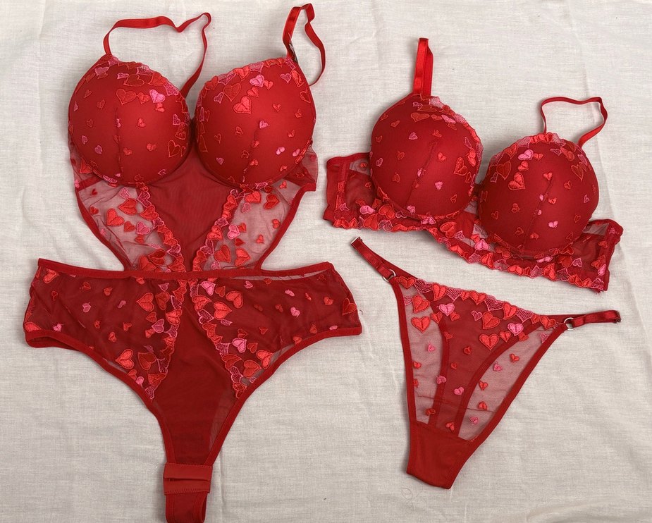 Nakışlı kalp desenli, canlı kırmızı renkli bohem tarzda sütyen ve alt takım. Normal uzunlukta ve şık detaylarla öne çıkar. ❤️