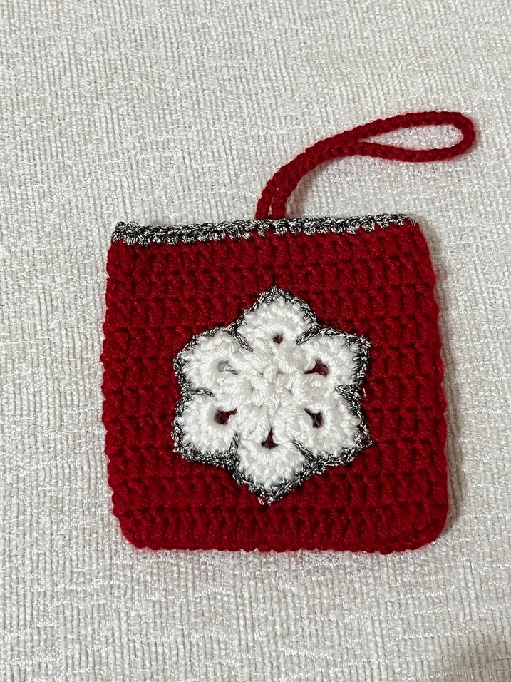Kırmızı renkte, beyaz çiçek nakışlı ve askı halkalı fırın eldivenidir.