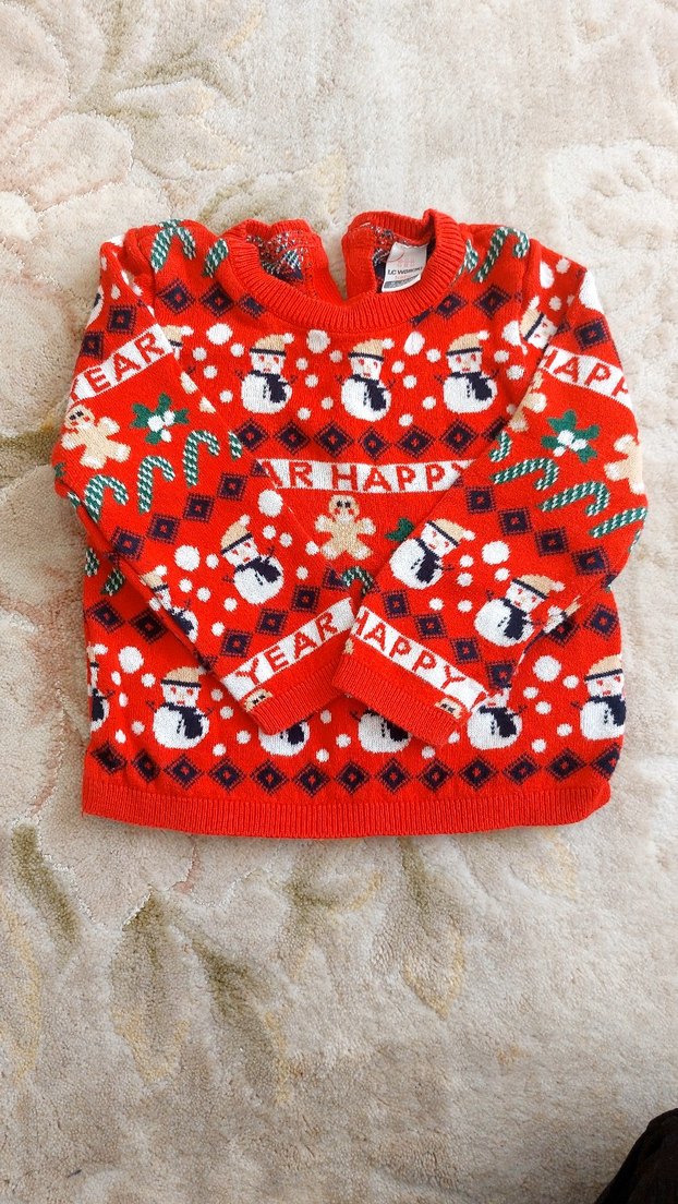 Nakışlı Kırmızı Çocuk Triko Kazak 9 ay