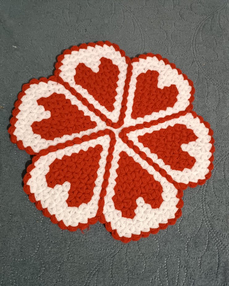 Nakışlı kalp desenleriyle kırmızı fırın eldiveni, mutfakta şık ve renkli bir detay sunar. ❤️