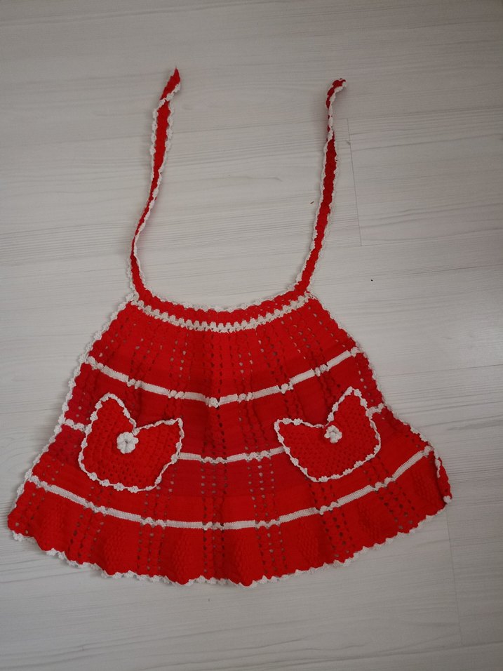 Nakışlı Kırmızı Mutfak Önlüğü el örmesi çeyizlik