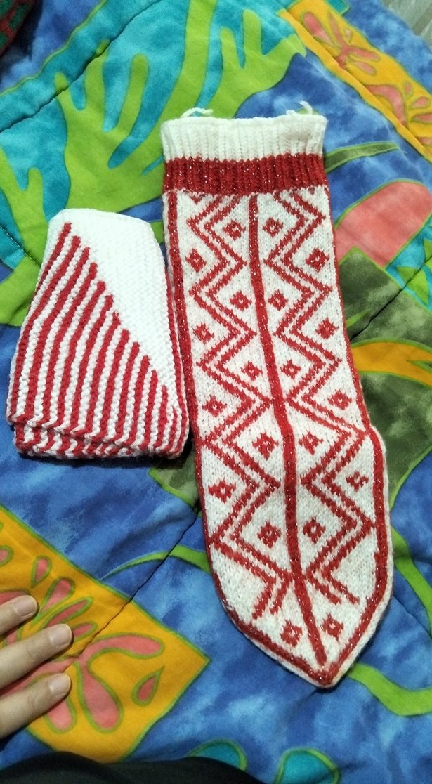 Yumuşak beyaz kumaş üzerine rengarenk kırmızı nakış işçiliği ile sıcak namaz çorap ve destik ele takılan namaz çorapları.