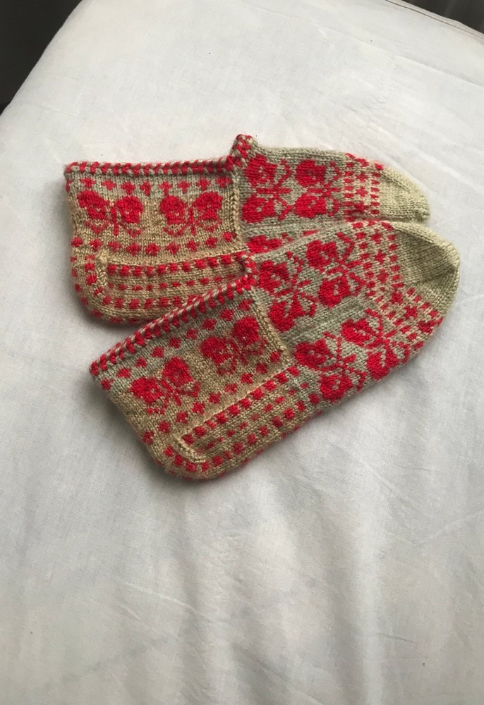 Nakışlı Kırmızı Örgü Kadın Patik