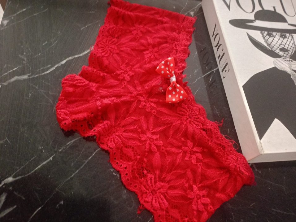 Nakışlı çiçek desenleri ve bohem tarzıyla kırmızı, kısa mini uzunlukta kadın iç çamaşırı, süslü fiyonk detaylı.