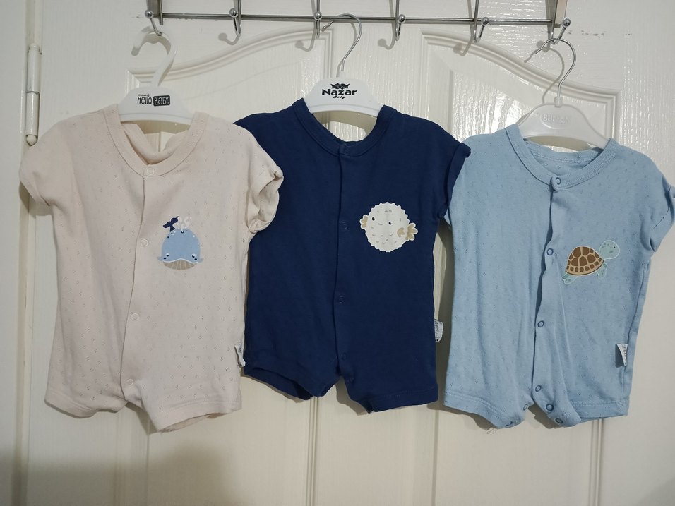 Yumuşak pamuktan yapılmış, kısa kollu, yuvarlak yaka ve düğmeli mavi pastel renkte nakışlı bebek şort tulum. Hiçbir kusuru yok tertemiz 3' unun fiyatidir tekli almak isteyene yardımcı olurum