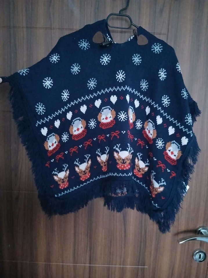 Nakışlı, Kısa, Renkli Örgü çocuk panço