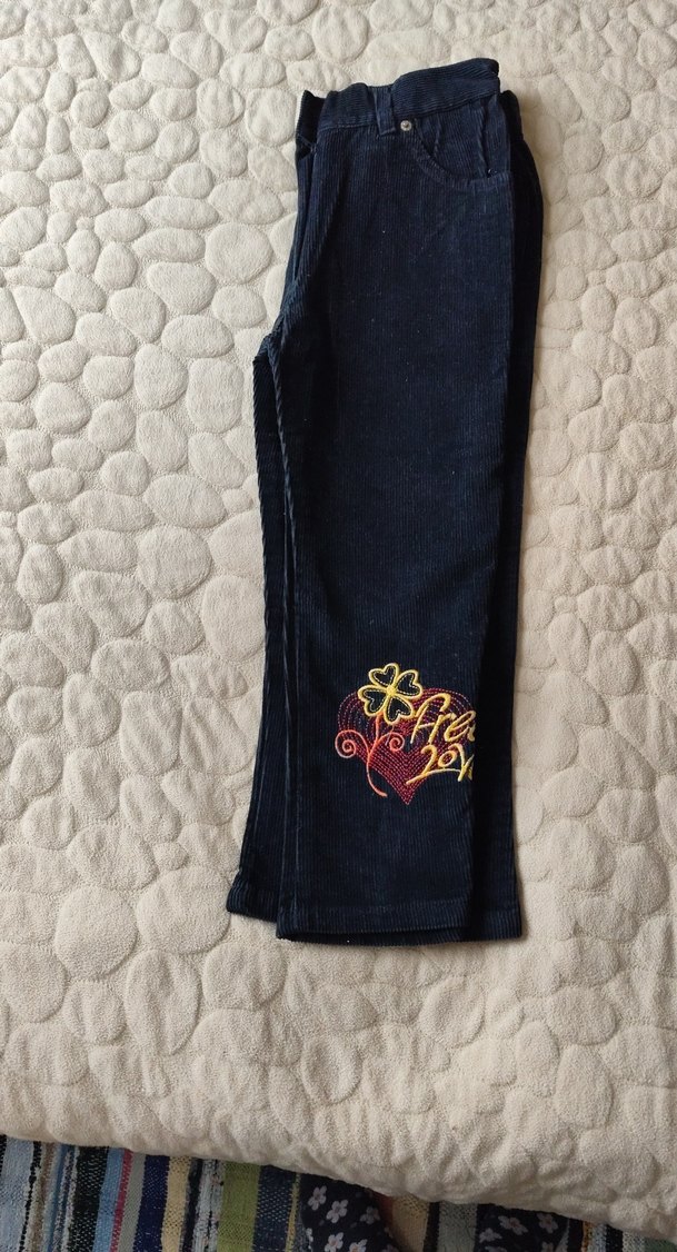 Nakış detaylı, kadife dokulu, beli lastikli, bohem ve retro tarzda kız çocuk kot pantolon.Hic kullanılmadı,