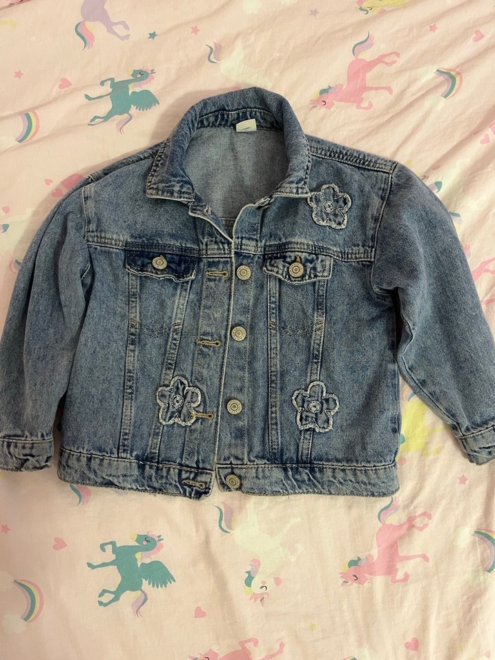 Nakışlı Kız çocuk Mavi Düğmeli Denim Ceket