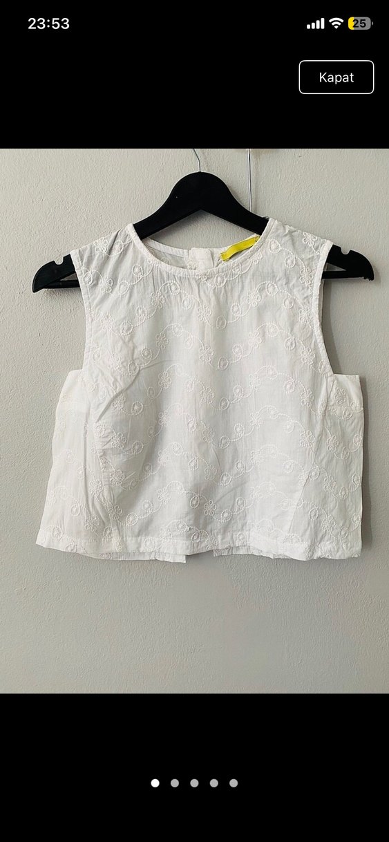 Nakışlı Kolsuz Beyaz Keten Bluz