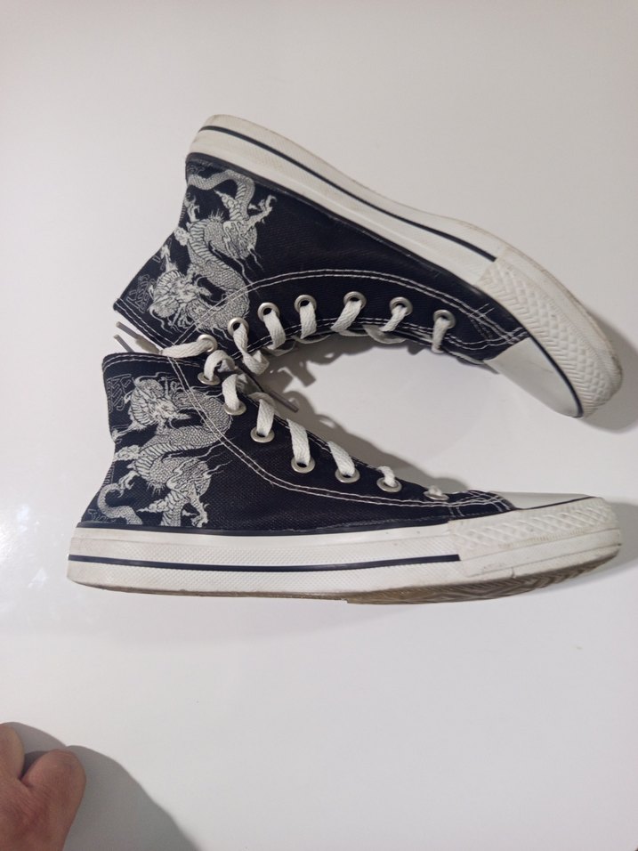Nakış işlemeli kot kumaştan, dolgu topuklu ve bağcıklı kadın spor ayakkabısı. Mavi renkte, rock punk tarzını yansıtır. Günlük kullanım için uygundur. 1 kez kullanıldı.