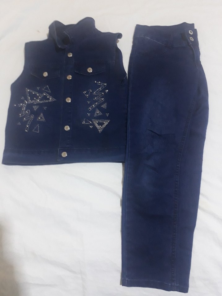 Nakışlı Koyu Mavi Kolsuz Kot Ceket