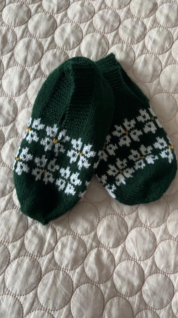 Nakışlı beyaz çiçek desenli koyu yeşil erkek çorapları, yumuşak ve rahat dokuda. 36-37.