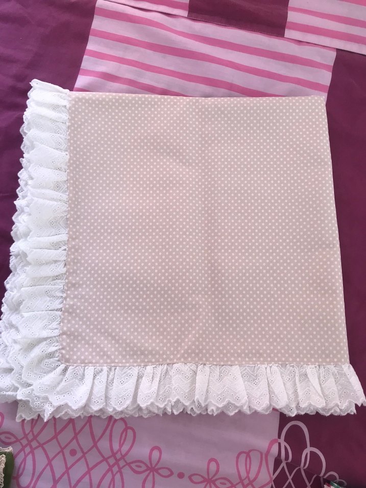 Pastel tonlarında nakışlı ve dantelli kenarlı masa örtüsü, masanıza zarif ve yumuşak bir dokunuş katar. El emeği