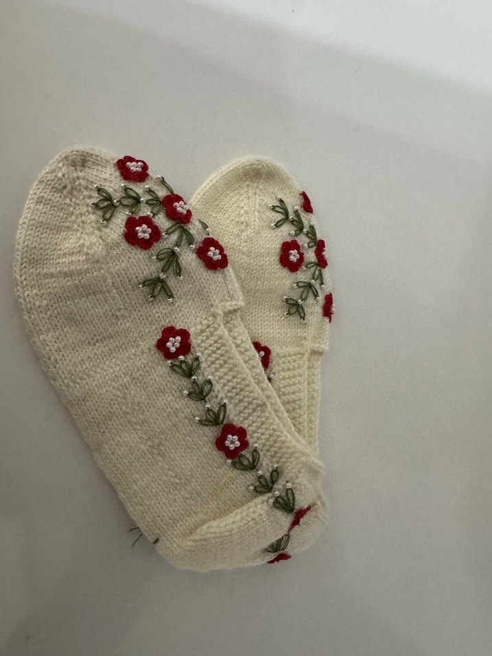 Nakışlı krem Örgü Kadın patik 5 mil isteginz model ve renk örülr