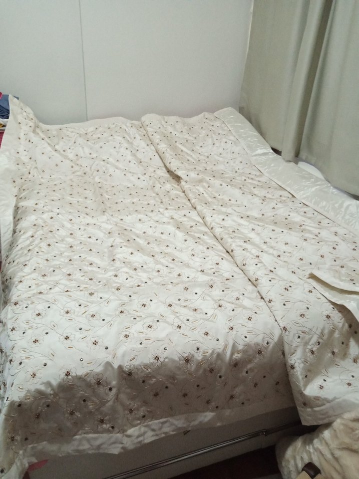 Yumuşak ve şık dokunuş sağlayan, narin nakışlı desenlere sahip krem yatak örtüsü ️. tamamen el işçiliği ile tek tek işlenmiştir 2 adet yastık kılıfı var fermuarlı fermuarlari yok maalesef fiyata yansıttım hiç bir leke sökük yırtık yok ve sadece yatak üstüne sarıldı altında yatilmadı battal boy ebatları soran için yazarım.