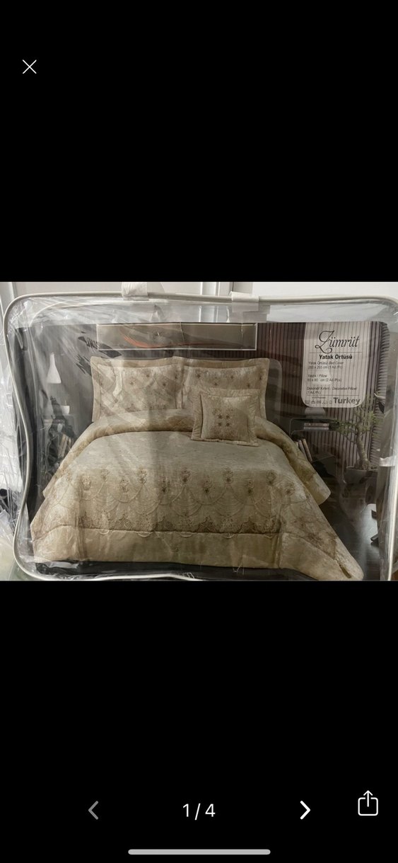 Krem renklerde, zarif nakış detaylarına sahip yatak örtüsü seti. Yumuşak dokusu ile şık bir görünüm sunar.sadece çeyiz sererken kullanıldı hiçbir sorunu yok çok şık model yastıklara elyaf geçirilmiştir elyaflısı sadece kılıfı gönderilecektir