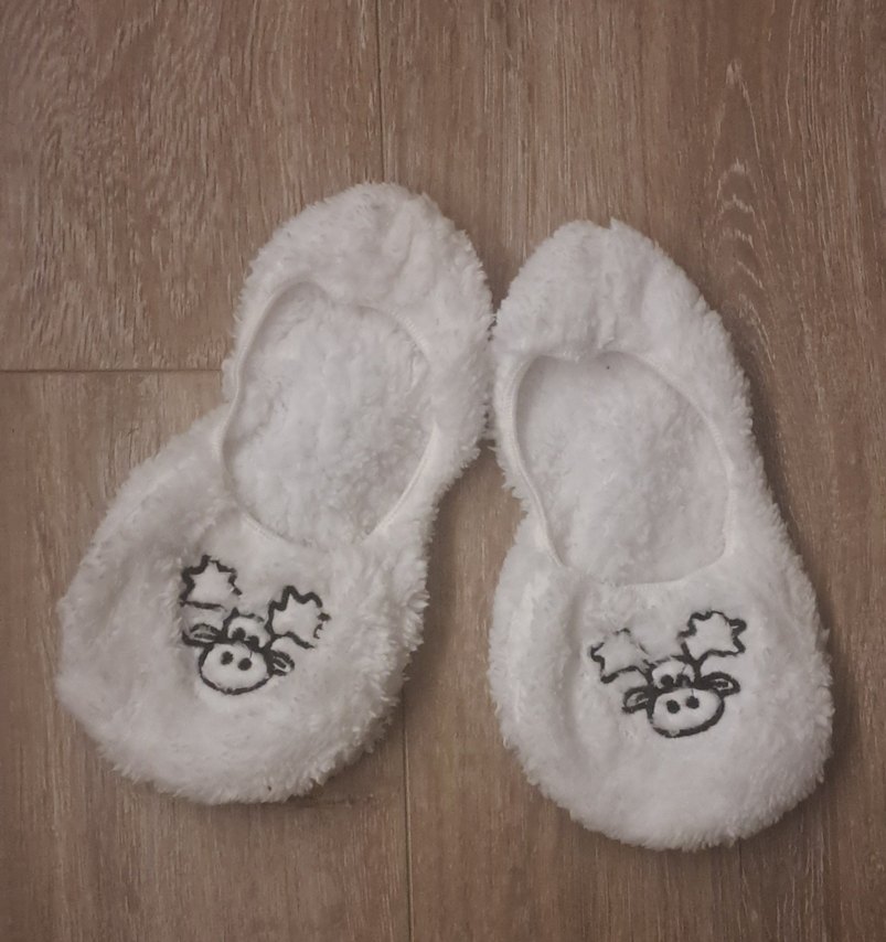 Yumuşak ve sıcak kumaş, kürk detaylar ve nakışlı desenlere sahip beyaz kız çocuk ev terliği. 35-36 no.