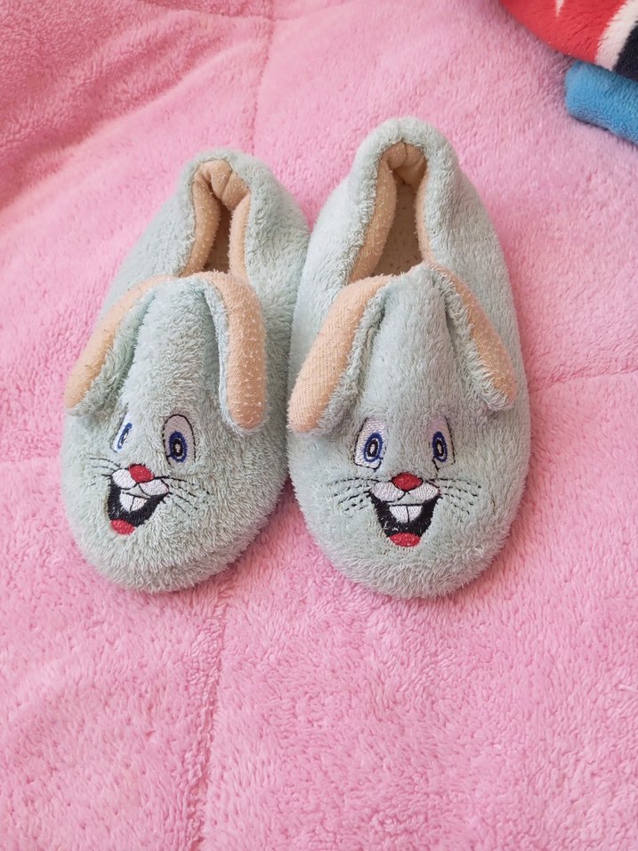 Nakışlı tavşan yüzü ve kürk detaylı, yumuşak ve sıcak peluş kumaştan yapılmış pastel pembe kız çocuk terlikleri.