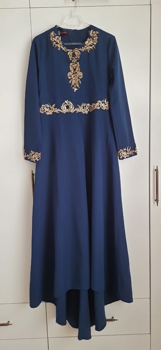 Nakışlı Lacivert Uzun Kadın Elbise
