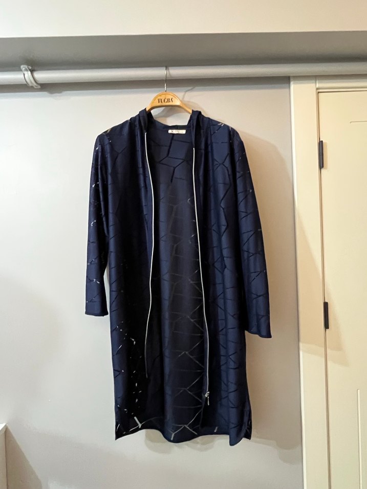 Nakışlı Lacivert Uzun Keten Kadın hırka