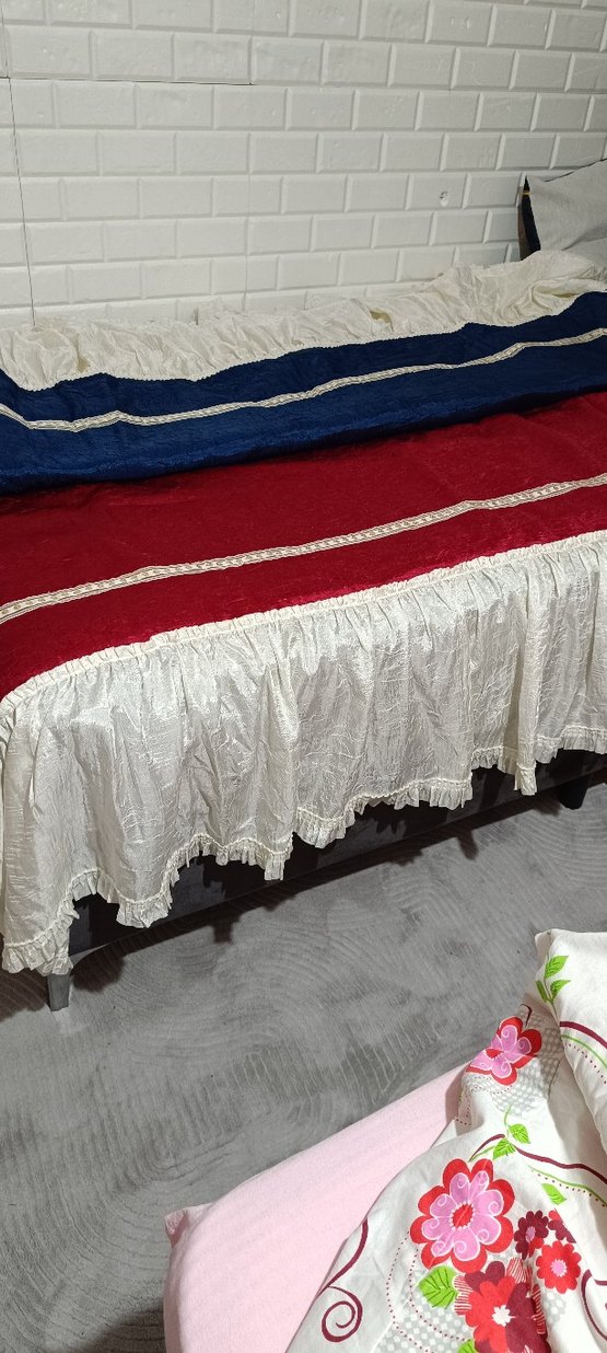 Nakışlı lacivert ve bordo beyaz fırfırlı Yatak Örtüsü