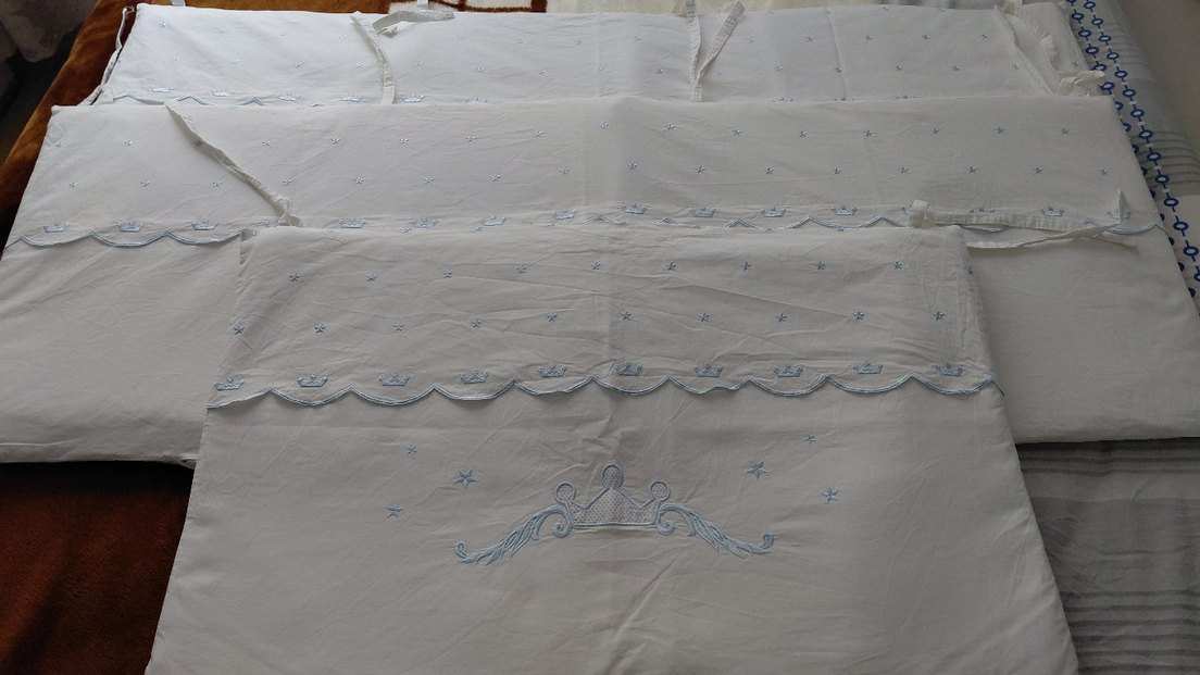 Özel olarak dikim yaptırıldı.Pamuk krem kumaş içi dolgulu kral bebek konsept nakışlı.Korumalı bebek fermuarı çıkarıp kolaylıkla yıkanabilir.Alt değiştirme minderi vardır, hiç kullanılmadığı için minderin ufak bir yerinde sararma var yıkanınca çıkar.Başlık ölçüsü: 74×47cm dir. Kenarlıklar ölçüsü: 126x45 cmdir. Alt değiştirme minderi ölçüsü:84×55 cmdir.