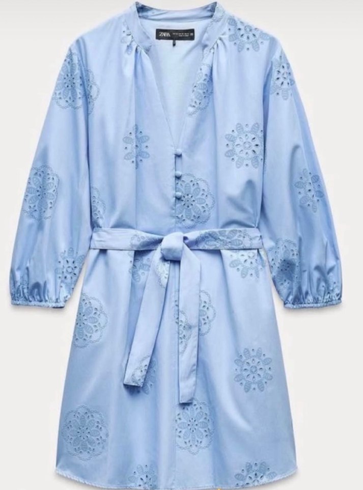 Bu pastel mavi midi elbise uzun kollu, nakışlı detaylara sahip, bol kesim ve belden bağlamalı bohem tarzda bir modeldir. Nakış işli elbise pamuklu poplin kumaş içi astarlı iki kol 56 cm boy 85 cm etiket kesiktir karton etiketi yoktur kuşaklı poplin elbise #elbise