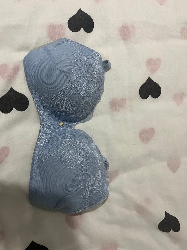 Mavi renkte, nakışlı çiçek desenleriyle sade ve bohem tarzda, normal uzunlukta sütyen.
