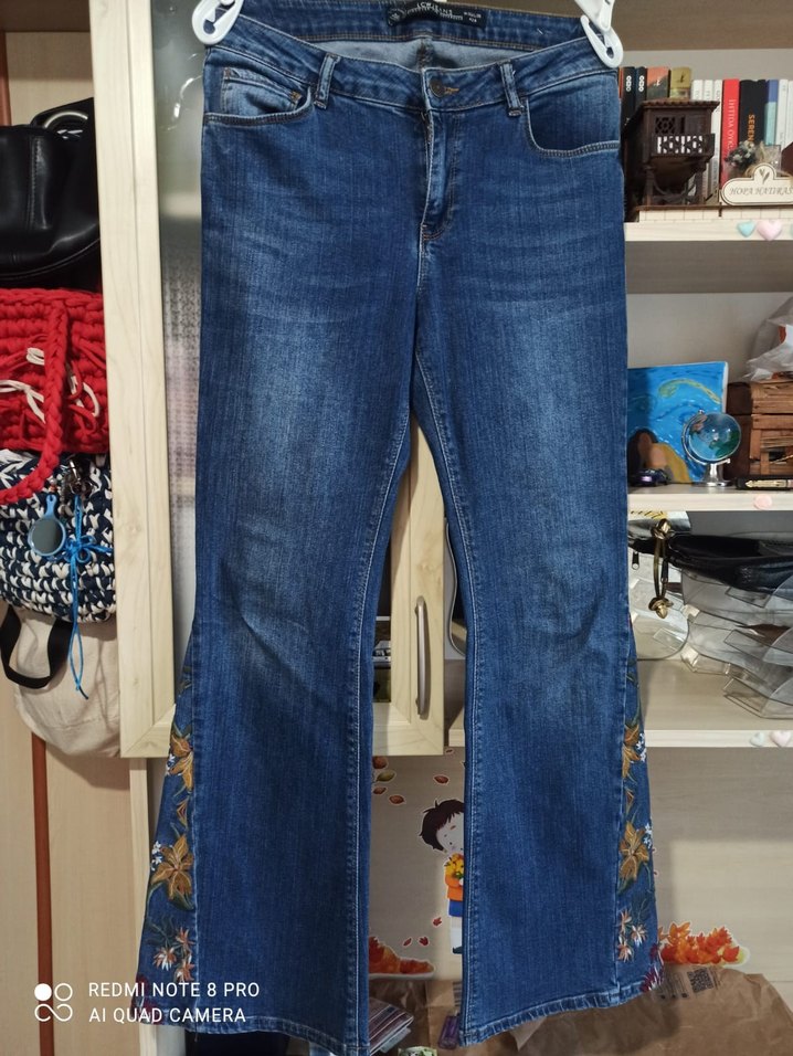 paçaları çiçek işlemeli mavi Jean pantolon, ki emer tokalı, günlük için uygun İspanyol paça pantolon