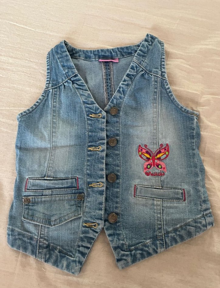 Nakışlı Mavi Denim Kız Yeleği