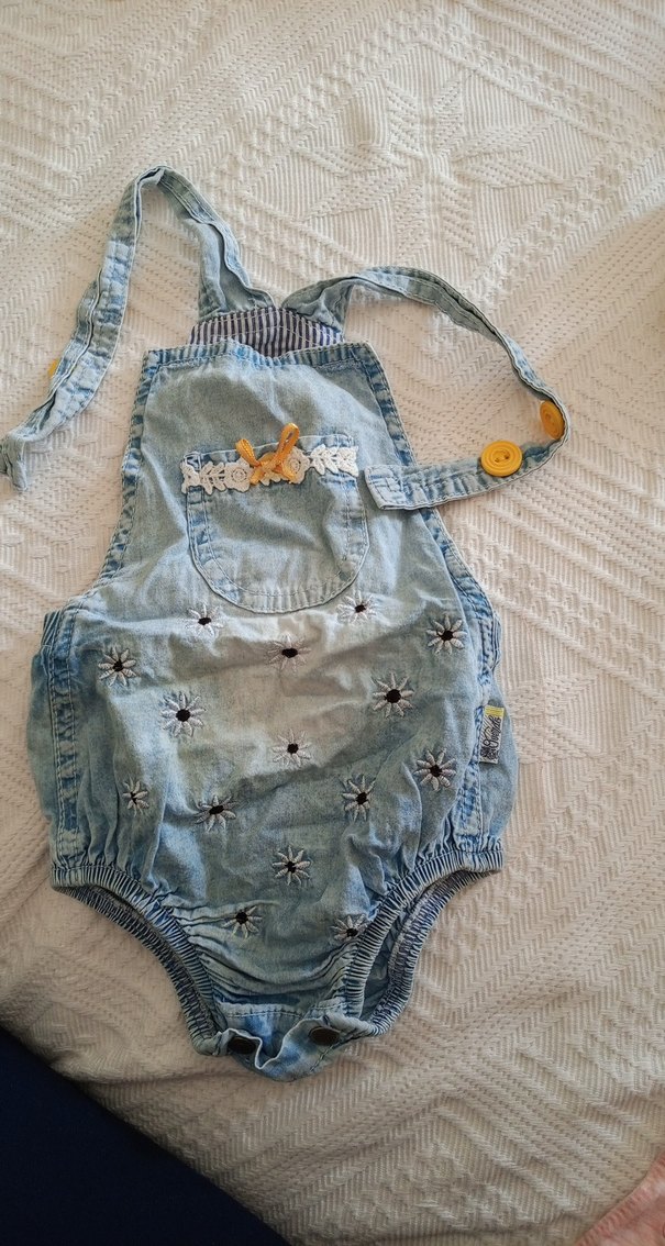 Nakışlı Mavi Denim Salopet