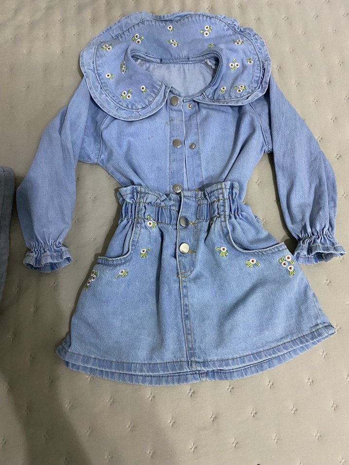 Nakışlı Mavi Denim Uzun Kollu Kız takım