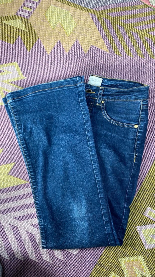 Nakışlı Mavi Düğmeli Kadın Kot Pantolon