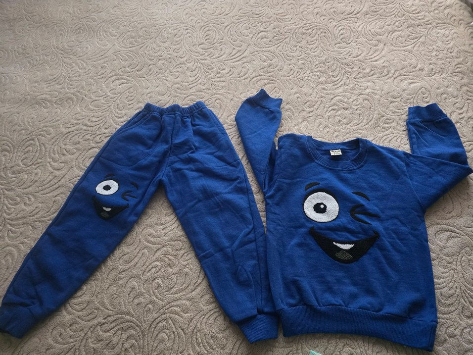 Yumuşak ve sıcak kumaştan yapılmış, uzun kollu üst ve pantolondan oluşan bebek erkek takımı. Nakışlı renkli yüz ifadeleri ve örme detaylar bulunur.