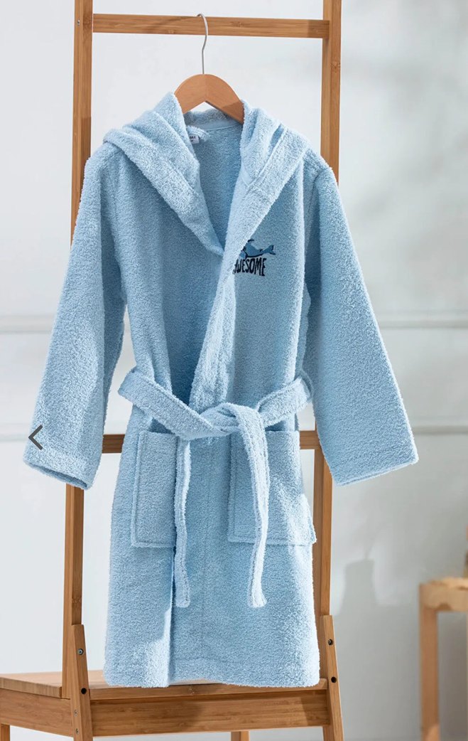 Pastel mavi renkte, nakışlı detaylı ve kapüşonlu erkek çocuk bornozudur. Yumuşak dokusuyla rahatlık ve sıcaklık sağlar. Evideadan aldım , çok az kullanmış . Çocuk bornoz giymek istemiyor o yüzden satıyorum . Beden 6-8 yarıyor. Bol seversen 6-7 yaş için iyi oluyor.
