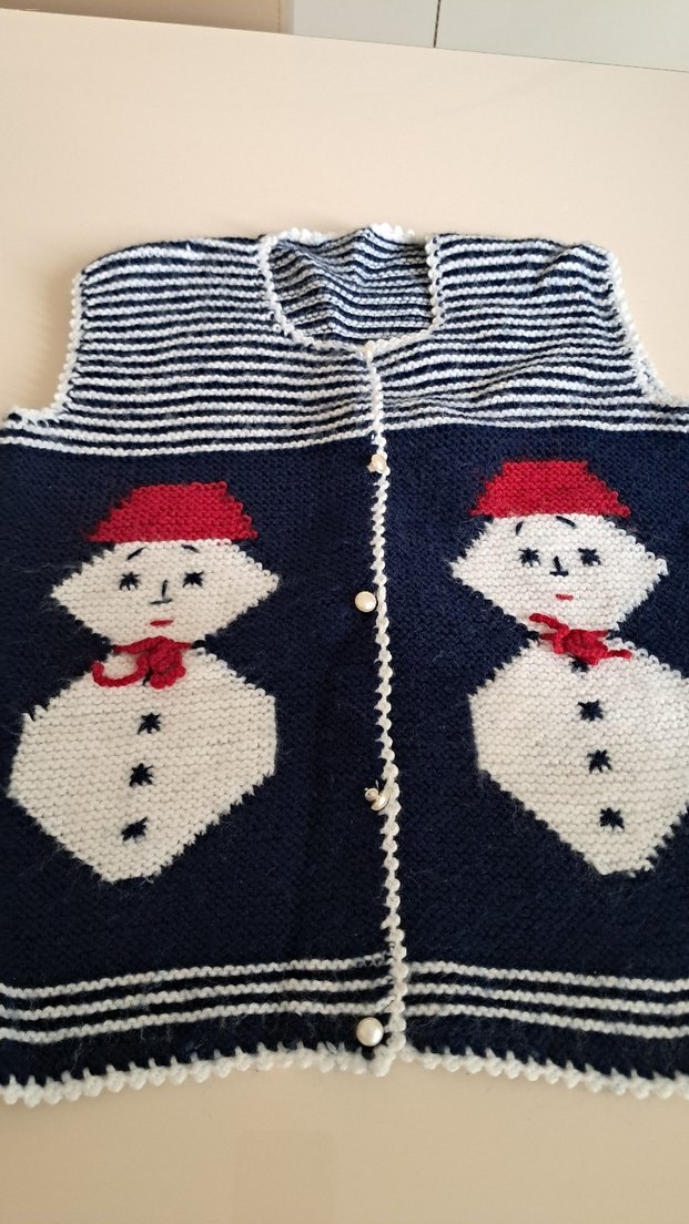 Nakışlı Mavi Erkek Çocuk Triko Yelek