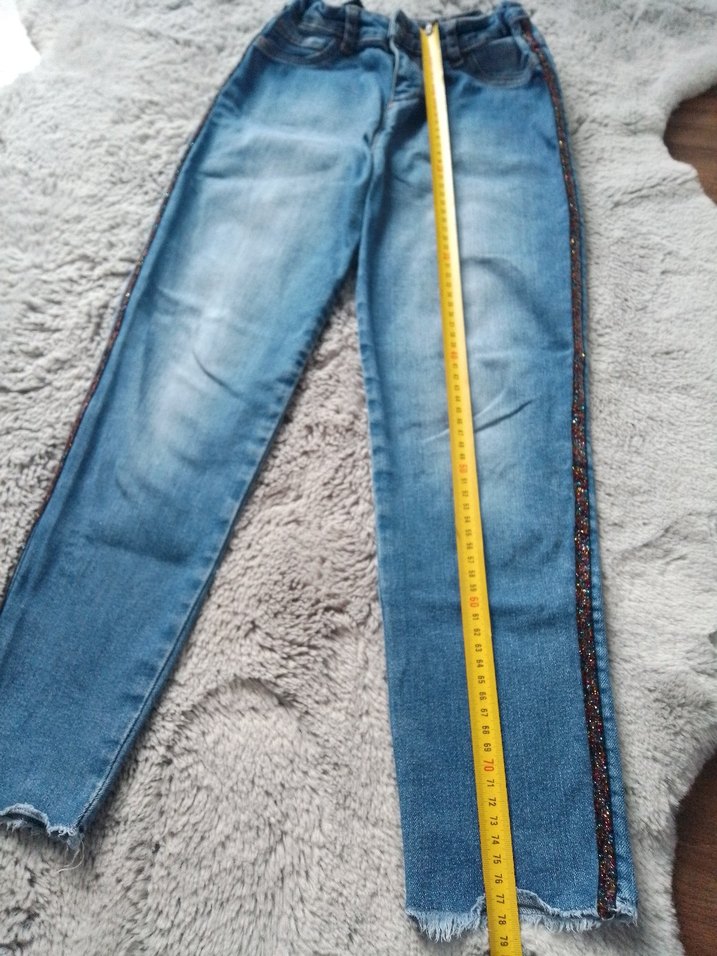 Nakış detaylı yan şeritlere sahip, elastik bel ve midi boyda mavi kot pantolon. Günlük rahat kullanım için idealdir.