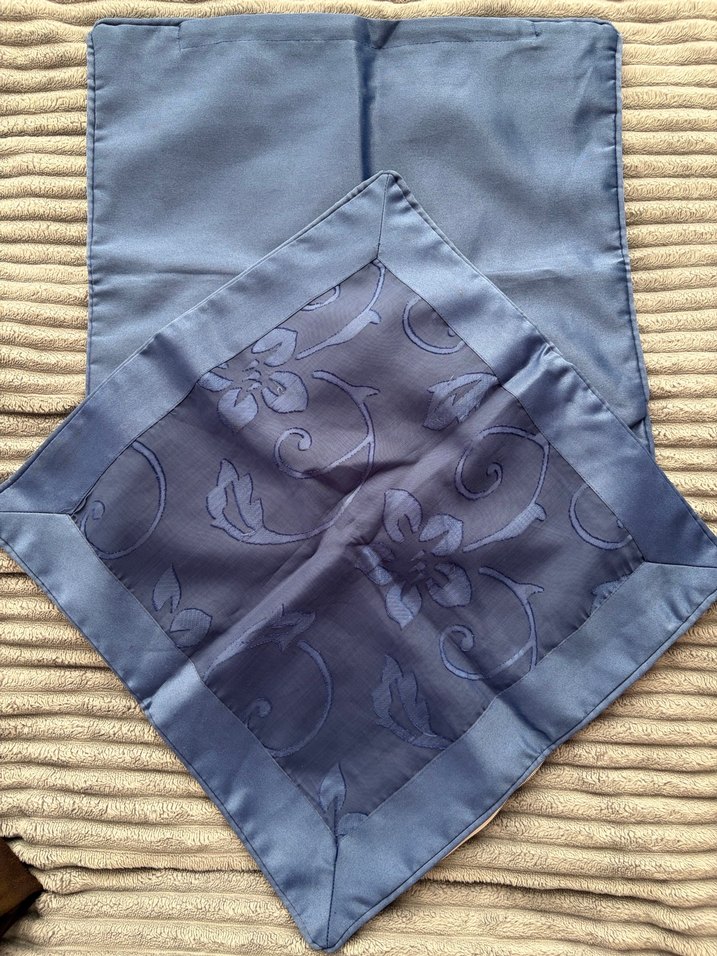 Nakışlı çiçek desenleriyle mavi tonlarda, konvansiyonel tarzda yumuşak dokulu kırlent kılıfı. ️ Kullanılmamış yeni ürün.