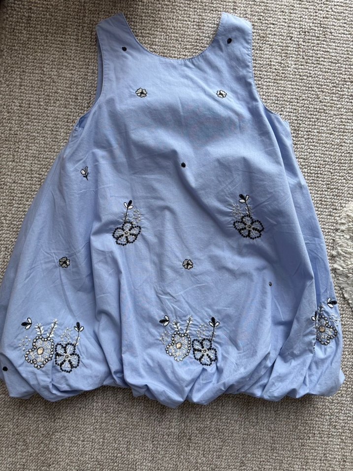 Nakışlı Mavi Kız Bebek Elbisesi Boncuk Detaylı