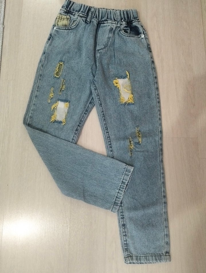 Nakışlı Mavi kız Çocuk Kot Pantolon