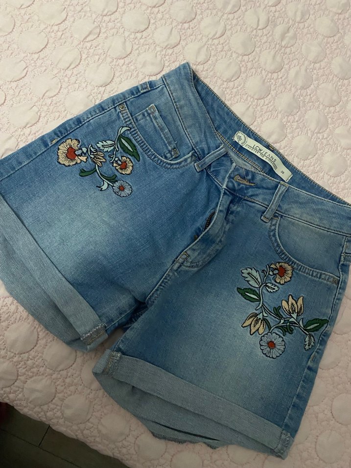 Nakışlı çiçek desenli düğmeli bol kesim mavi mini kot şort bohem sokak stili için uygun kusuru yoktur yenidir